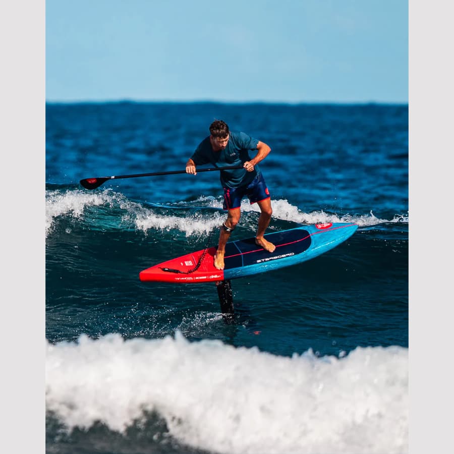 ה-Starboard Ace Foil לשנת 2026 הוא הפתרון המושלם לגולשים המחפשים גלשן שממריא לאוויר כמעט ללא מאמץ. העיצוב הייחודי בתצורת “טיפה” (Teardrop) עם זנב סיכה (Pin-tail) מקטין את הגרר ומאפשר האצה מהירה מאוד בשלב הטקסי, מה שהופך אותו לאידיאלי עבור SUP Downwind. המבנה שלו דורש טכניקה טובה מהגולש, אך בתמורה הוא מאפשר ללמוד איך להרים פויל מהמים גם בים פלא (Flatwater) בעזרת כוח החתירה בלבד.