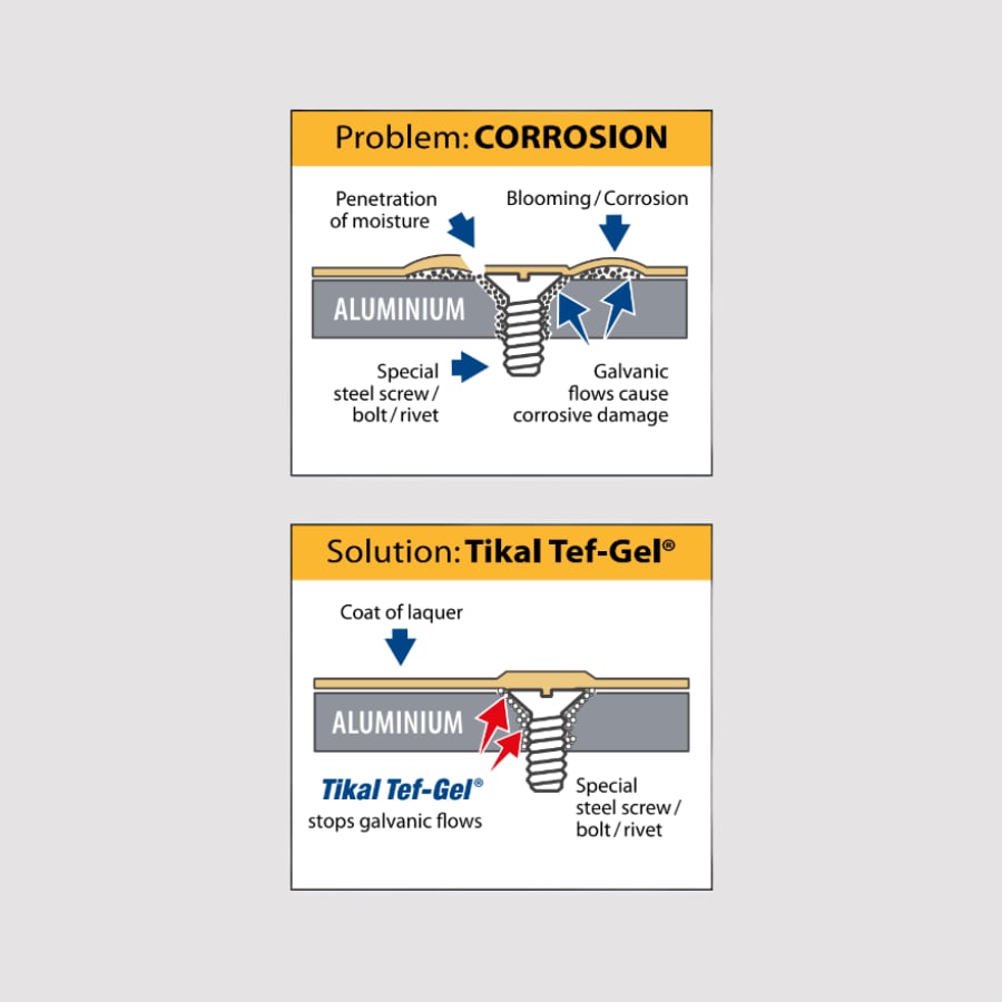 עבור מרכזי שירות וייצור הדורשים את רמת ההגנה הגבוהה ביותר, Tikal Tef-Gel 500g הוא המוצר המנצח. המשחה, המיוצרת בקיל שבגרמניה, תוכננה לעמוד בדרישות הקשוחות ביותר של עולם הספנות והתעופה. היא פועלת כמחסום פיזי וחשמלי מוחלט בין מתכות שונות, ובכך עוצרת לחלוטין את תהליך הקורוזיה הגלוונית שעלול להוביל להרס מכלולים יקרים.