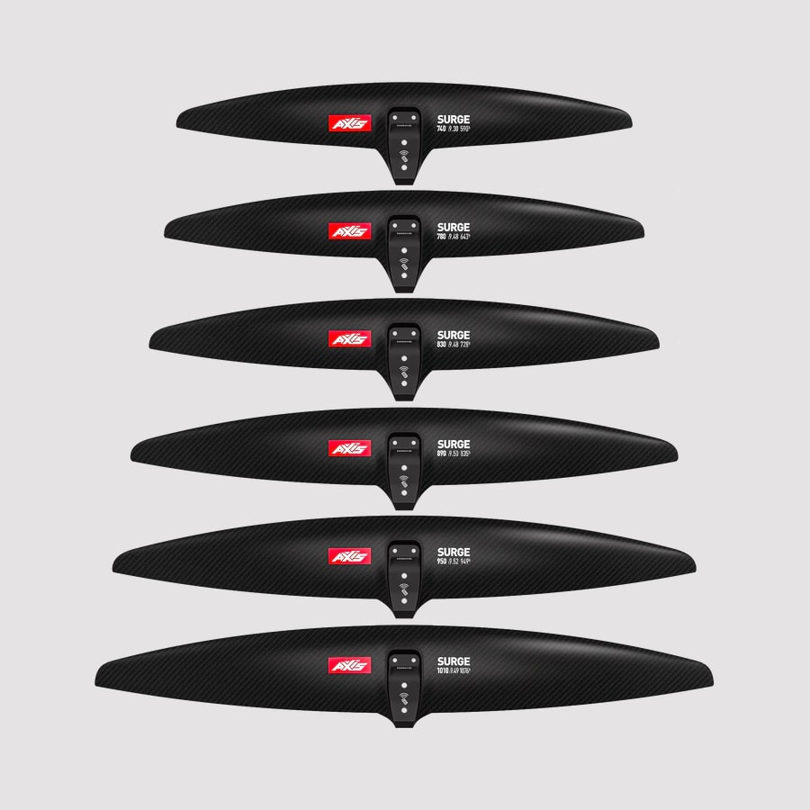 ה-Axis Surge מגדירה מחדש את מעטפת הביצועים ככנף High-Performance המשלבת גאומטריה מתקדמת עם יחס אספקט גבוה (סביב 9.5). בניגוד לכנפי סרף מסורתיות, ה-Surge חותכת את המים בגרר מינימלי, מה שמאפשר המראה מהירה ויציבות כיוונית מרשימה גם במהירויות גבוהות. התכנון הגאומטרי שלה מאפשר עילוי (Lift) צפוי, המעניק לגולש ביטחון מלא בביצוע פניות חדות (Snaps) ושמירה על מהירות גבוהה ביציאה מהסיבוב. הכנף מציעה וורסטיליות יוצאת דופן: היא מצטיינת בווינג פריסטייל בזכות ה”Pop” המתפרץ שלה, ומהווה פתרון אידיאלי לגלישת Downwind טכנית עם ווינג. היא דורשת טכניקה נכונה בביצוע מהפכים (Gybes) וסיבובים באוויר (Tacks), אך מתגמלת בתחושת טיסה חלקה וביכולת “פמפום” אקטיבית המקלה על קישור גלים.