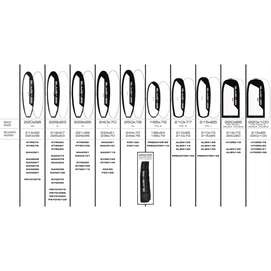 | דגם תיק | מידת תיק | מתאים לגלשנים במידות | זמין כ- |